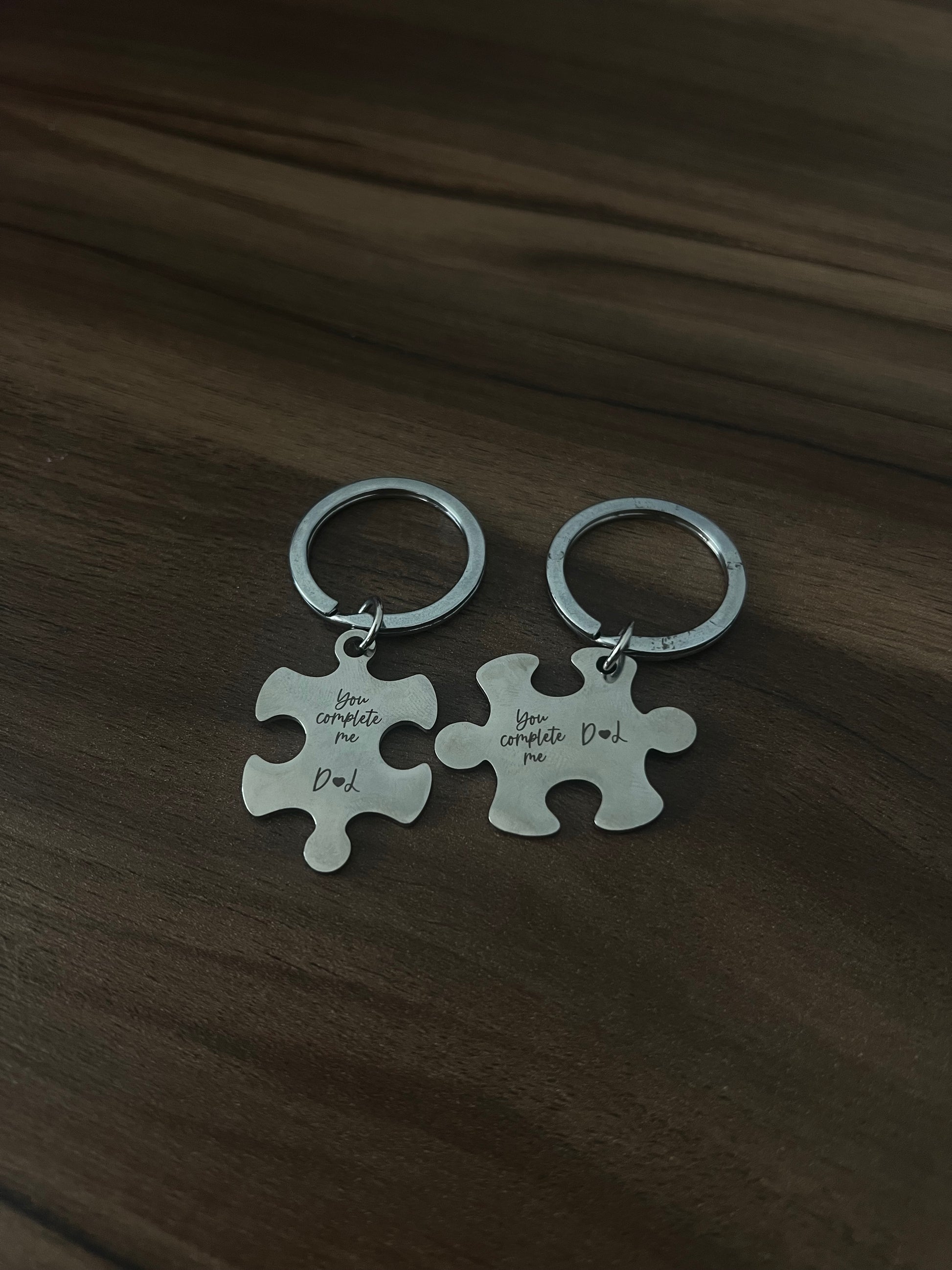 Set de llaveros de acero inoxidable en forma de piezas de rompecabezas.
